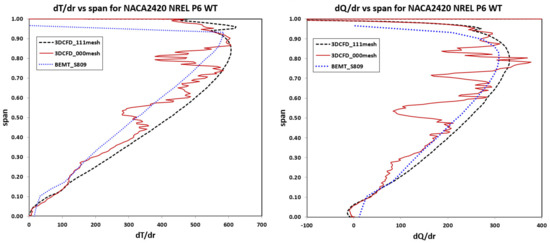 The spanwise thrust and torque captured for a very high dense mesh (000 = 6 million) is also plotted in Figure 24 to show the grid-based instability occurring in the steady RANS solver and warrants an unsteady solution, which is out of scope for this study. Table 2 compares the properties of py_BEM results with different domain sizes.