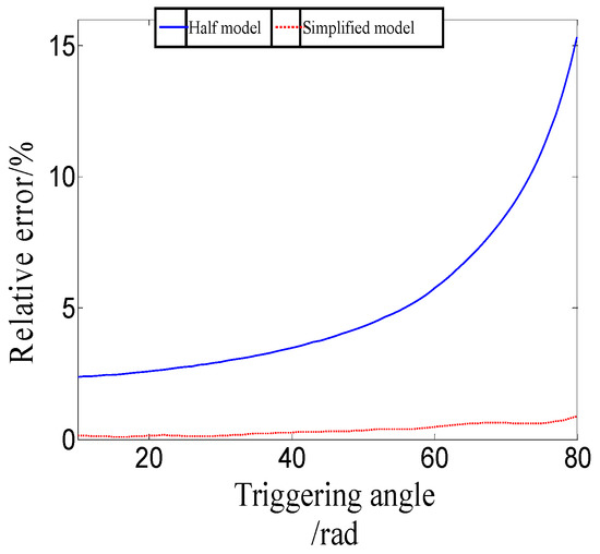 Figure 7 shows the error analysis results with case 1’s parameters, and the results of the complete model are considered the real value. It is obvious that the simplified model is much more accurate than the half model.