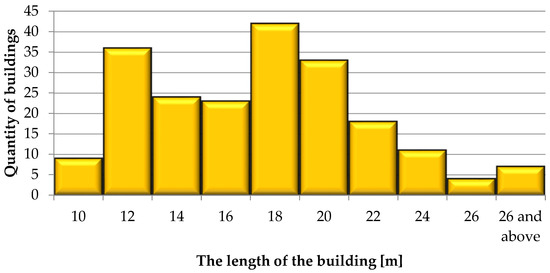 Distribution of data for the variable relating to the length of the buildings [m].