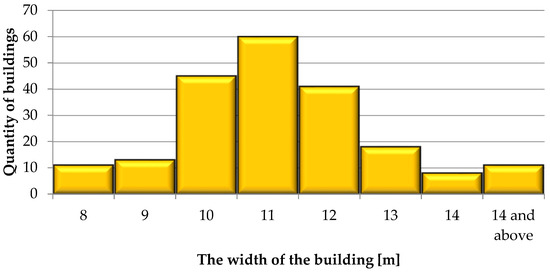 Distribution of data for the variable relating to the width of the buildings [m].