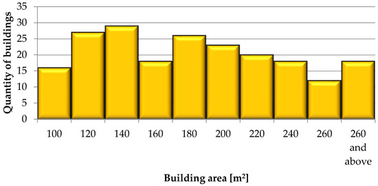 Distribution of data for the variable relating to the building area [m2].