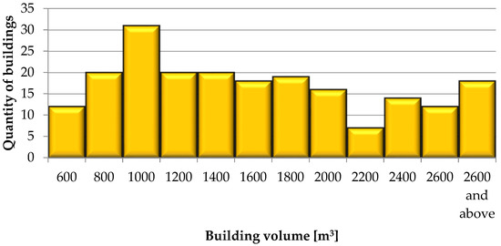 Distribution of data for the variable relating to the building volume [m3].