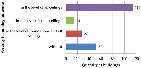 The mining protection of most of the older single-family houses was carried out in the phase of their use by applying an anchorage at the level of the ceilings. It is also possible to highlight some buildings, for which a perimeter reinforced concrete band was made at the level of the foundations. Newer structures were made with protection for the III or IV categories of the mining area with additionally reinforced concrete benches and ties, rib-and-slab concrete or concrete ceilings and ceilings with peripheral reinforced concrete rings.
