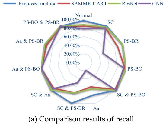 Although the overall accuracy of [21] is not as good as [24], it also realizes the effective identification of most of the fault samples, and the performance is better when the types of samples are SC, PS-BO, SC and PS-BO, PS-BO and Aa, and PS-BR and PS-BO.