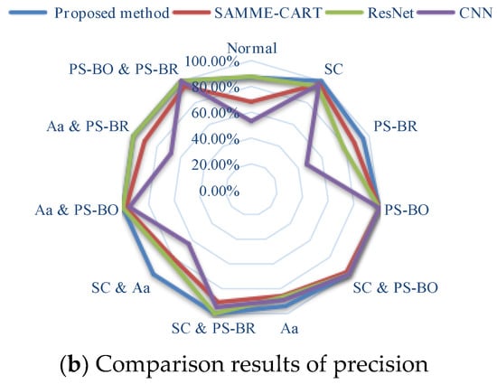 It is observed from Figure 8b that aiming at the sample labels predicted by the model, except for the normal, PS-BR, and Aa samples, the prediction results of the other types of samples are both completely correct.