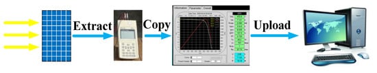 The traditional fault diagnosis process of PV module is shown in Figure 10. When troubleshooting the array, it is necessary to temporarily stop the grid connection, the solar system analyzer is used to extract the I-V curve of the array, and then copy the I-V curve to the computer for fault identification. The long-distance transmission of data and the decrease in energy utilization caused by the diagnosis process were the most serious defects of the traditional diagnostic method. In addition, another disadvantage of it is that the maintenance process is complex and requires on-site operation.