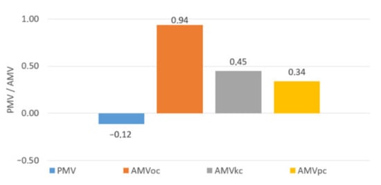 - real average rating based on thermal preference analysis (AMVpc): −3—much warmer, −2—warmer, −1—slightly warmer, 0—no change, 1—slightly cooler, 2—cooler, 3—much cooler;