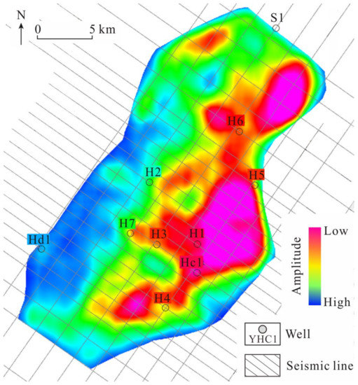 Three-dimensional seismic data covering the whole Hari depression were provided by Shaanxi Yanchang Petroleum (Group) Co., LTD, Xi’an, China. Seismic data were collected and processed with a line spacing of 12.5 m and an intersecting line spacing of 25 m, respectively. The dominant frequency in the target layer was about 50 Hz. The vertical resolution was about 10 m, and the average speed was 2000 m/s.