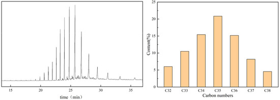 VGO4 was obtained from Sinopec Shanghai Gaoqiao Petrochemical Company, Shanghai, China. The properties of VGO4, including density, composition, etc., are shown in Table 1. The distribution of the carbon numbers of paraffin in VGO4 is shown in Figure 1, which are measured by the pyrolysis of a gas chromatography-mass spectrometer.