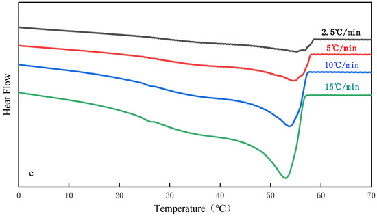 where d H d T refers to the heat flow rate at a certain temperature, T0 is the onset temperature of crystallization, and T is the terminal temperature of the crystallization. T0, T, and T are from −20 °C to 80 °C.