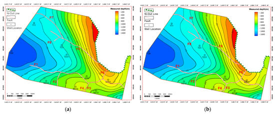 Tectonic maps of coalbed in Xi’xiagou block. (a) Tectonic map of coalbed roof (b) Tectonic map of coalbed floor.
