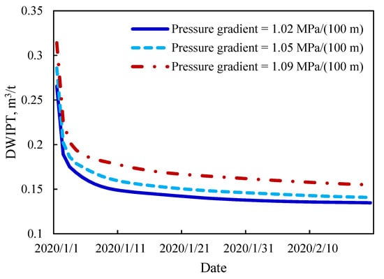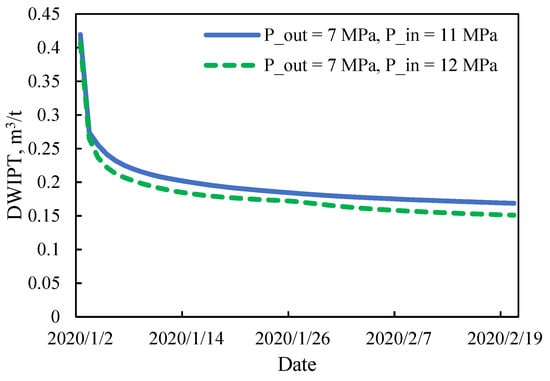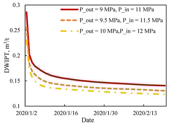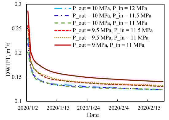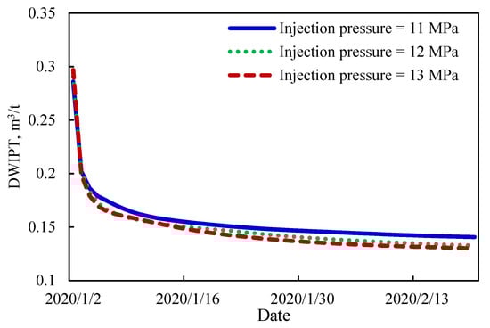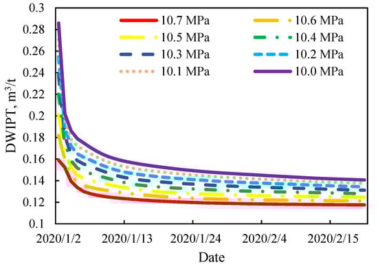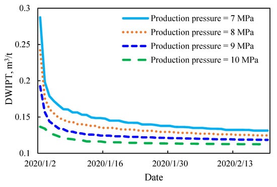 DWIPT changes by date for different production pressures (Injection pressure = 11 MPa).