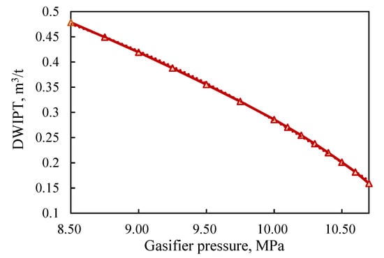 where Pgasifier denotes the gasifier pressure, MPa, and w is the gasifier width, m.