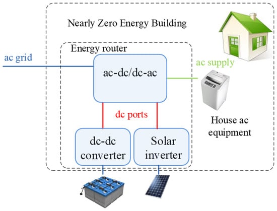 - Zhen, L.; Penghua, L.; Wanxing, S.; Songhuai, D.; Qing, D.; Zhipeng, L. Research on a household energy router for energy internet. In Proceedings of the 2018 13th IEEE Conference on Industrial Electronics and Applications (ICIEA), Wuhan, China, 31 May–2 June 2018; pp. 952–957. [Google Scholar] [CrossRef]