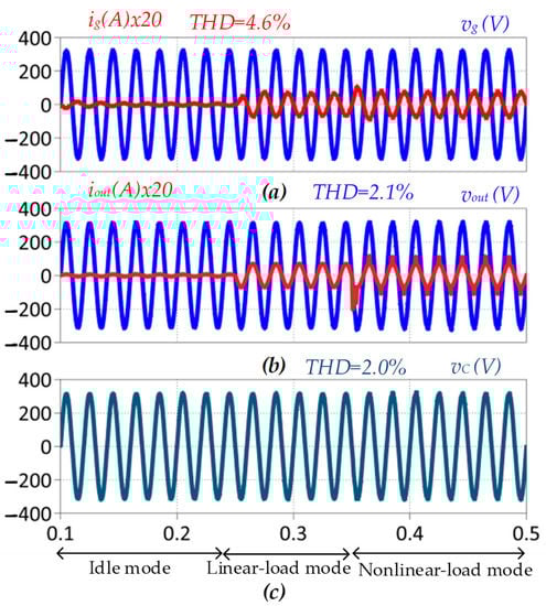 | linear and nonlinear load with kout = 0.0 and kc = 1.0 | Grid current ig | 4.6 |