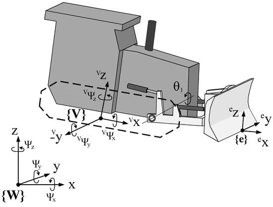 15]. The resistance from soil cutting is assumed negligible in this paper. This assumption is acceptable when finishing a desired surface, as the blade moves no more than a few centimetres below the present surface, making the resistance effect very small compared to the machine dynamics. For deeper blade motion through soil, however, the tracks can lose traction, which should then be considered. Manipulator joint control is achieved using Equation (5) and a controller with the desired cylinder velocity feedforward using Equation (6) aiming to improve the controller reaction to the pitching of the mobile base [