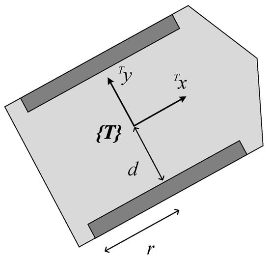 The mobile base maximum travel velocity is also limited by the HST, as described in Equation (9). Its value can be computed using the inverse kinematics Equation (8) for each side wheel by substituting the maximum values of Equation (9) and solving for the velocity