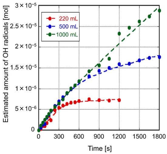 - Shiraki, D.; Ishibashi, N.; Takeuchi, N. Quantitative Estimation of OH Radicals Reacting in Liquid Using a Chemical Probe for Plasma in Contact With Liquid. IEEE Trans. Plasma Sci. 2016, 44, 3158–3163. [Google Scholar] [CrossRef]
