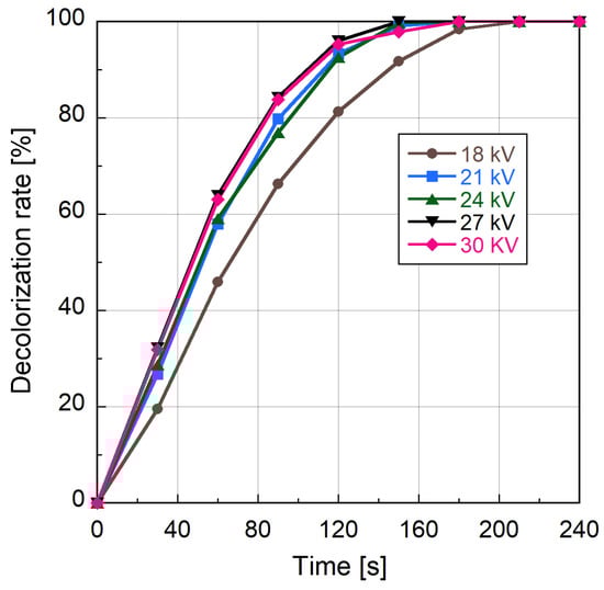 - Minamitani, Y.; Shoji, S.; Ohba, Y.; Higashiyama, Y. Decomposition of dye in water solution by pulsed power discharge in a water droplet spray. IEEE Trans. Plasma Sci. 2008, 36, 2586–2591. [Google Scholar] [CrossRef]
