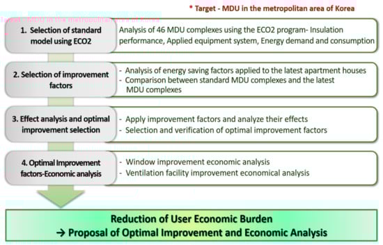 Research methodology: selection of optimal improvement factors and economic analysis of MDUs in metropolitan areas of Korea, using the building energy assessment program ECO2.