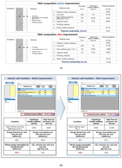ECO2 input for P complex. (a) Composition of exterior wall; (b) Exterior wall insulation.