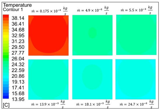 The solution method incorporated the pressure-velocity coupling scheme using the SIMPLEC algorithm. For spatial discretization, a second-order discretization was utilized to obtain accurate results. Therefore, the second-order scheme was employed to spatially discretize the pressure, whereas the second-order upwind scheme was applied to discretize the momentum and energy. Besides, to control the solution variables, under-relaxation factors were used, and all default values were set as optimum values. The residuals of all variables have been monitored to ensure a convergent solution. The residuals of continuity, x-velocity, y-velocity, z-velocity, and energy are set to 1 × 10−3, 1 × 10−6, 1 × 10−6, 1 × 10−5, and 1 × 10−8 respectively. Further, before starting the calculations, standard initialization has to be applied to implement initial values of all variables in all cells of the domain.