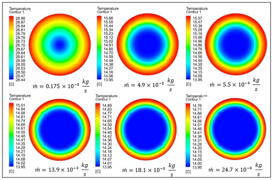 Further, the model’s dimensions were chosen based on the actual geometry of the experimental model. The numerical simulation is performed by applying the Ansys Fluent solver, which uses the Finite Volume Method (FVM) to discretize the governing equations of continuity, momentum, and energy [27,28].