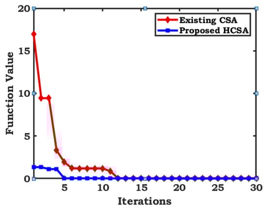 From Figure 3, it is noticed that the proposed HFABC provides a better value and convergence occurs in fewer iterations in comparison to the existing ABC method.