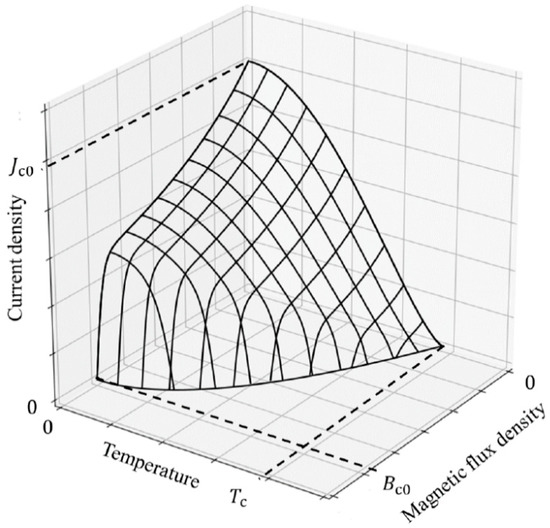 However, the critical temperature Tc is not the only parameter that defines the occurrence of superconductivity. In order to the obtain superconducting properties of materials, the magnetic flux density Bc and the current density Jc cannot be exceeded. These three quantities, called critical (Tc, Bc and Jc), are interrelated and define the surface of the critical parameters for a given superconductor, such as that which is presented in Figure 3. It determines the maximum possible transport current flowing in the wire under superconducting properties.