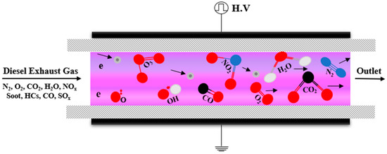 - Song, C.L.; Bin, F.; Tao, Z.M.; Li, F.C.; Huang, Q.F. Simultaneous removals of NOx, HC and PM from diesel exhaust emissions by dielectric barrier discharges. J Hazard Mater. 2009, 166, 523–530. [Google Scholar] [CrossRef] [PubMed]