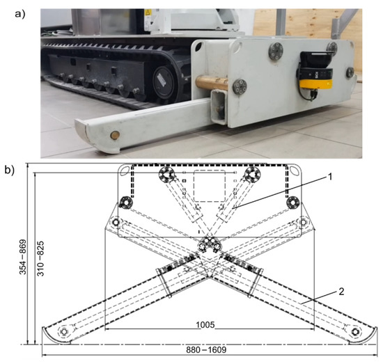 16]. The main task of the HLL module is to lift the RBS to the desired height and precisely level it. Leveling of an RBS occurs in two stages: maximum extension of the supporting legs by means of a short-stroke actuators, and then lifting and leveling by means of a lifting actuators. In the first stage, the actuators extend the supporting legs without external load until they come into contact with the ground. In the second stage, the lifting actuators press the supporting legs until the tracked platform is raised to the required height. This is followed by the servohydraulic leveling process in which the hydraulic actuators level the RBS at a specific height. Once leveled, the RBS is mechanically locked. RBS hydraulic lifting and leveling is justified in cases where: