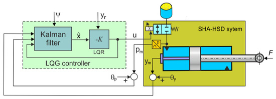30]. In the LQG controller, the KF gains were set so that the estimator errors converged long before the controller errors, which should ensure well-preserved feedback properties. The stability margin was improved by influencing the dynamics of the estimator. Control of pressure shock damping was tested with the use of the LQG controller during robotic bricklaying under laboratory conditions.