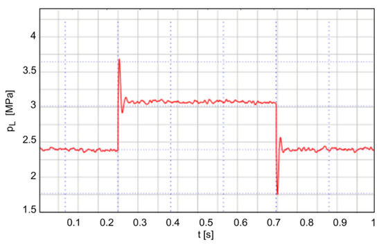 The effectiveness of the LQG controller in damping instantaneous pressure shock in the SHA-HSD system was confirmed by an experiment carried out during RBS bricklaying work under laboratory conditions. The influence of the operation of the LQG controller on the instantaneous pressure shock damping in the SHA-HSD system is shown in an exemplary experimental characteristic