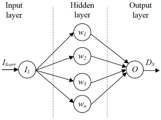 The ANN controller has recently gained remarkable interest in the energy-management strategies [39]. The neural network architecture comprises three layers: input, hidden, and output, with each layer involving a neuron (also known as a node) connecting it to the multi-layer networks. It is worth highlighting that the ANN controller’s task encloses two main stages: the training stage and the operational one. The ANN controller modeling design is illustrated in Figure 6, below. Accordingly, the ANN controller-associated input and output aspects are the current and duty cycle, respectively. Note that the current is the difference between the ( and ) currents.