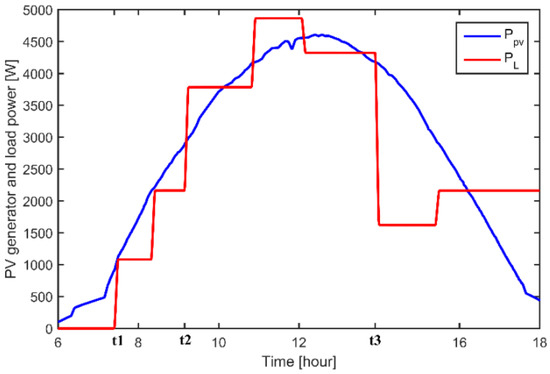 PV generator and load power profiles.