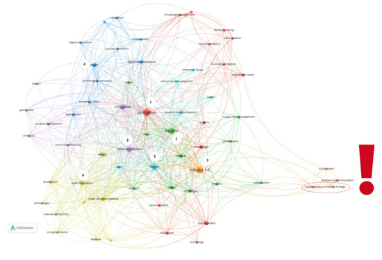 - “Orange” cluster (3) = “Industry 4.0” keyword cluster and the words: sustainability co-creation strategy, business model innovation, …