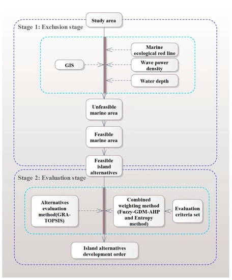 - It includes both large-scale site selection and small-scale site selection. The first stage aims to exclude unfeasible marine areas and identity island alternatives for constructing wave power plants. The second stage aims to evaluate island alternatives to determine priority order.
