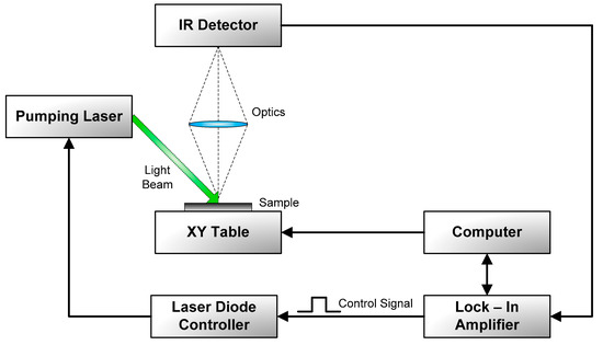 - Pawlak, M. Photothermal, photocarrier, and photoluminescence phenomena in semiconductors studied using spectrally resolved modulated infrared radiometry: Physics and applications. J. Appl. Phys. 2019, 126, 150902. [Google Scholar] [CrossRef] [Green Version]