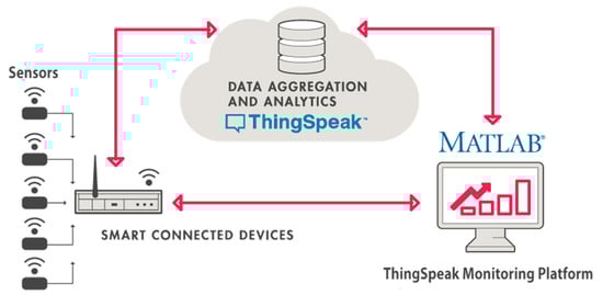 34]. To generate the model-suggested communication structures, this article employs data flow between the MATLAB software program and the open-source IoT framework ThingSpeak. To imitate real-time cloud communication, ThingSpeak was chosen.