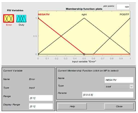 We have considered three linguistic variables (negative, positive, right) for the input ‘Error,’ and for the output control, we have considered three linguistic variables (up, down, and no change). The fuzzy controller generated an appropriate switching pattern for the charging and draining of the battery. When the DC bus voltage and a reference voltage were compared, the fuzzy logic controller received four inputs.
