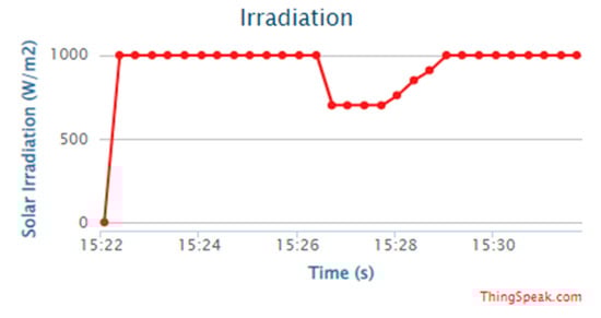 Figure 10 shows the solar irradiation profile proposed for this simulation. At the start of the simulation, the irradiation is set at a maximum value of 1000 w/m