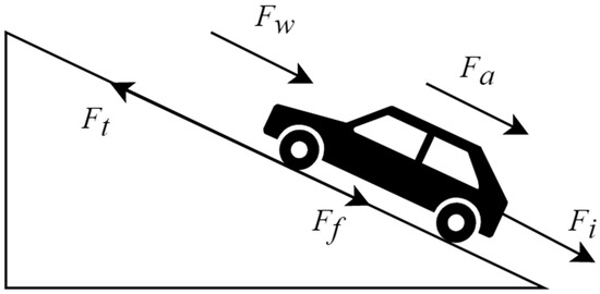 where is the vehicle mass, is the gravitational acceleration, is the rolling resistance coefficient, and is the road slope angle where the vehicle is located. It is generally considered that the road slope angle is small, .