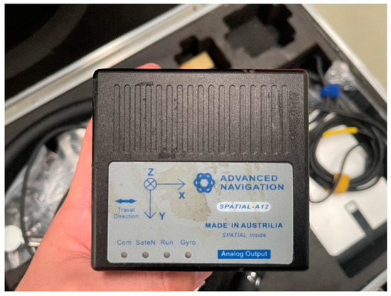 Among them, the low-precision gyroscope is used to assist the algorithm proposed in this paper, that is, to provide rough observation value for the subsequent system to input the observation value into the algorithm. The high-precision IMU and GPS are used to provide an experimental slope value with a very small error, which can be used as a reference value for the real slope. The IMU used in this experiment is shown in Figure 5.