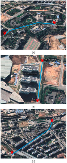 Micro slope model: the road with a low slope, with a slope of 1 to 5%. The starting point of the road section is at the gate of the Second canteen of Southwest Forestry University, and it moves forward to the school gymnasium, then runs along the slope to the Engineering Building, and stops in the middle of the slope. The slope of this section is mostly in the range of micro-slope, so this paper regards it as a micro-slope model.
