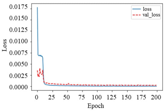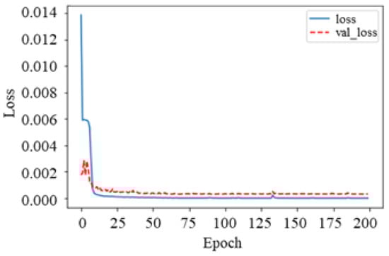 The training data for verifying the prediction accuracy of the CNN model were classified into Case 1, Case 2, and Case 3, and 200 epochs were learned for each case. Figure 7, Figure 8 and Figure 9 are graphs of the loss according to the epoch in each case, and show the loss for both the training data and the validation data. In each case, it was confirmed that the loss converged to a value close to 0. The verification of the CNN model was conducted for the optimal shapes of Test data 1 to Test data 9 and Type 3-1 in each case. Table 7 shows a comparison between the predicted values and the analysis results for the performance variables of the optimal shape in each case. Table 7 compares the performance variables of the optimal shape and the performance values of the CNN-predicted shape for each case. Table 8 is a table that verified the accuracy of the performance values of the CNN prediction shape for each case obtained from Table 7 through the root mean square error (RSME), mean absolute percentage error (MAPE), and mean absolute error (MAE).