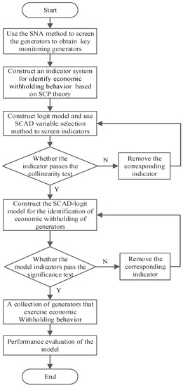 First, the logit discrete choice model is constructed, and the SCAD penalty regression method is used to filter the indicators. Variable selection can reduce the impact of data dimensions and the collinearity [37]. Second, the SCAD-logit model is used to identify the economic withholding behavior of generators. Finally, the confusion matrix, ROC curve, and AUC values are used to evaluate the model’s performance.