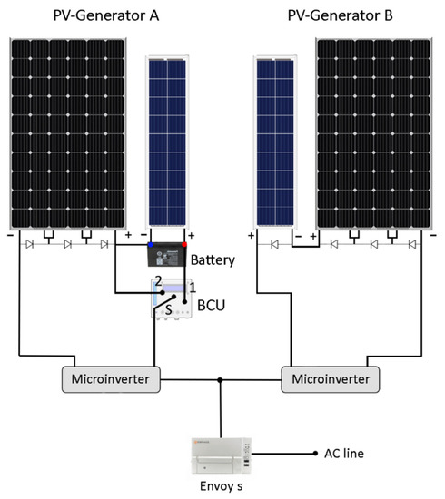 Schematic of the prototypal PV generator equipped with the Battery and the BCU.