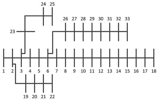 The EEE 33-bus distribution system is shown in Figure 5.