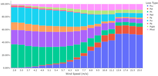 Distribution of the power losses in different stages of a direct-drive wind turbine.