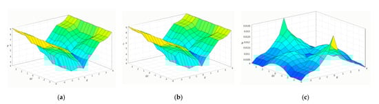 Fuzzy inference variation 3D diagram: (a) fuzzy inference Up variation diagram; (b) fuzzy inference Ui variation diagram; and (c) fuzzy inference Ud variation diagram.